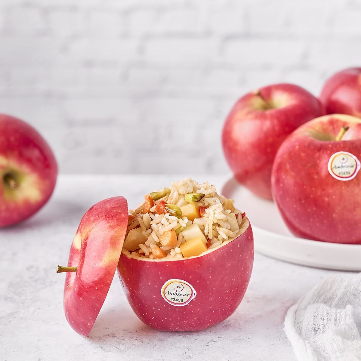 Hoy en nuestro blog, estamos emocionados de compartir una receta que seguramente se convertirá en una joya de su repertorio culinario: Manzanas rellenas de arroz, verduras y queso cheddar. Esta combinación única de sabores y texturas crea un plato sorprendentemente delicioso y reconfortante que celebra la versatilidad de las manzanas Ambrosia™ en un contexto totalmente nuevo. Imagina el contraste entre la dulzura natural de las manzanas y la mezcla perfecta de arroz integral, verduras frescas y queso cheddar derretido. No solo es una explosión de sabores, sino que también es una opción nutritiva y equilibrada. Una receta idea para sorprender a sus seres queridos en cualquier ocasión.