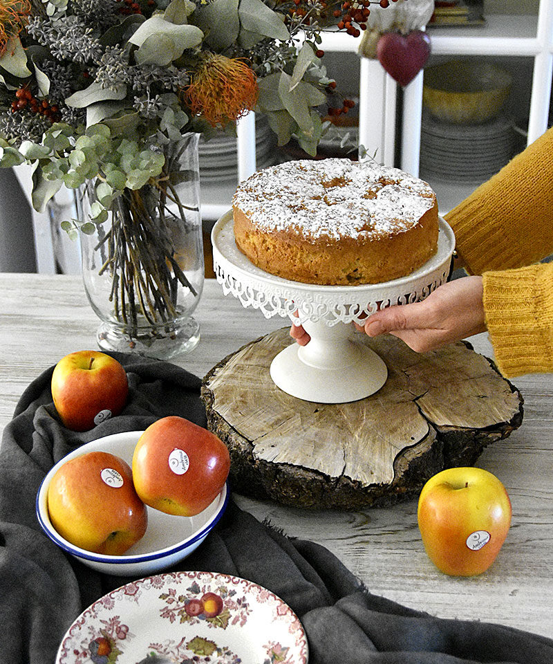 El resultado es una receta de bizcocho esponjoso con manzana. Ha utilizado las manzanas Ambrosia, su textura suave y su sabor dulce las convierten en una variedad perfecta para preparar todo tipo de postres.